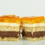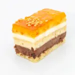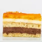 Bizcocho de nata, yema tostada y chocolate (también disponible en formato tarta).